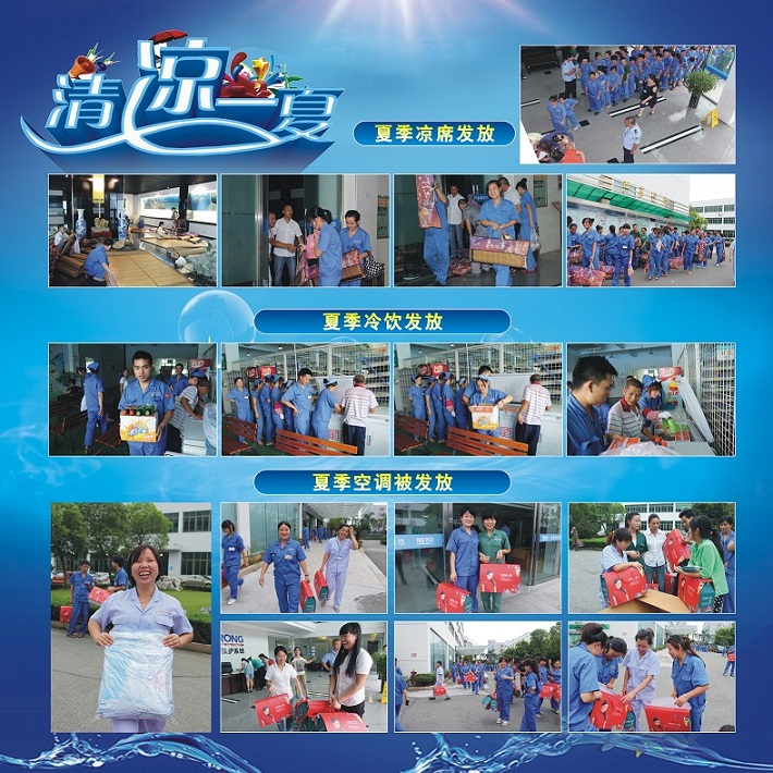 我司在7月份開(kāi)始,每日發(fā)放綠豆湯、同時(shí)發(fā)放冰鎮(zhèn)冷飲提供給員工進(jìn)行降暑;在7月底,發(fā)放夏季福利品1——高檔涼席;在8月中旬,發(fā)放夏季福利品2——空調(diào)被。