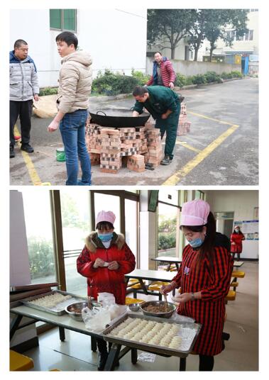 早上8點(diǎn),同事們興致勃勃地搬來了磚,搭起了灶,燉起了豬肉湯。廚房的同事們也不閑著,個(gè)個(gè)都是包餃子能手!