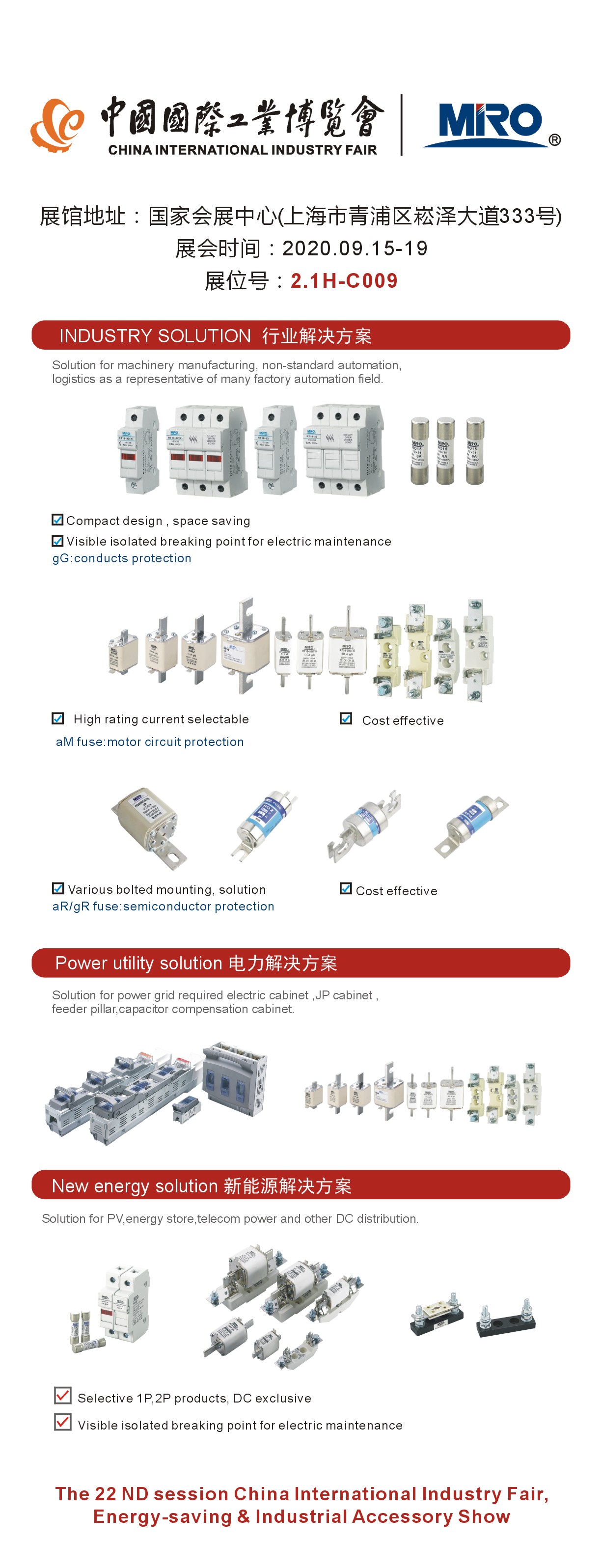 茗熔電器保護(hù)系統(tǒng)有限公司將于2020年9月15-19日,參加上海國(guó)際工業(yè)博覽會(huì),展位號(hào)2.1H-C009。