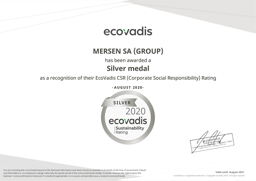 MERSEN(美爾森)踐行此觀念,在2020年,榮獲CSR(Corporate social responsibility-企業(yè)社會(huì)責(zé)任)榮譽(yù)稱(chēng)號(hào)。