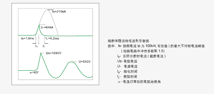 是熔斷體在額定電壓下能夠可靠地熔斷最大許可短路電流。短路時熔斷體中會通過比其正常工作大得多的瞬時電流,安全運行要