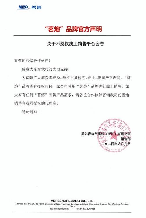 “茗熔”品牌官方聲明|關(guān)于不授權(quán)線上銷售平臺公告