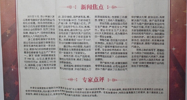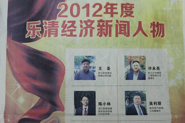 2012年度樂清經(jīng)濟(jì)新聞人物評(píng)選活動(dòng)由樂清日?qǐng)?bào)社聯(lián)合樂清市發(fā)改局、經(jīng)信局、科技局等14家單位舉辦。通過宣傳跟蹤,網(wǎng)絡(luò)投票、社會(huì)監(jiān)督等多方面,最終經(jīng)過部門評(píng)審,產(chǎn)生十大經(jīng)濟(jì)新聞人物。我司總經(jīng)理Alex喜獲樂清十大經(jīng)濟(jì)新聞人物之一。