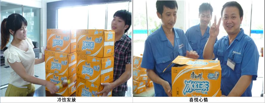 在工作日,每日早晨9:00左右投放冰爽雪糕,下午14:30投放冰鎮(zhèn)不同類型冷飲供員工飲用,以及每日不同時間段提供冰鎮(zhèn)綠豆湯供全廠員工飲用。