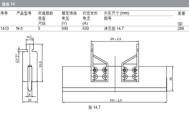 本系列零線(N)極熔斷器,為配裝圓筒帽形支持件/底座,以及熔斷器式隔離開關,與熔斷器配合,可作為隔離電源的功能。 額定絕緣電壓交流50Hz,690V額定工作電流至630A的線 路中作為N 極使用。