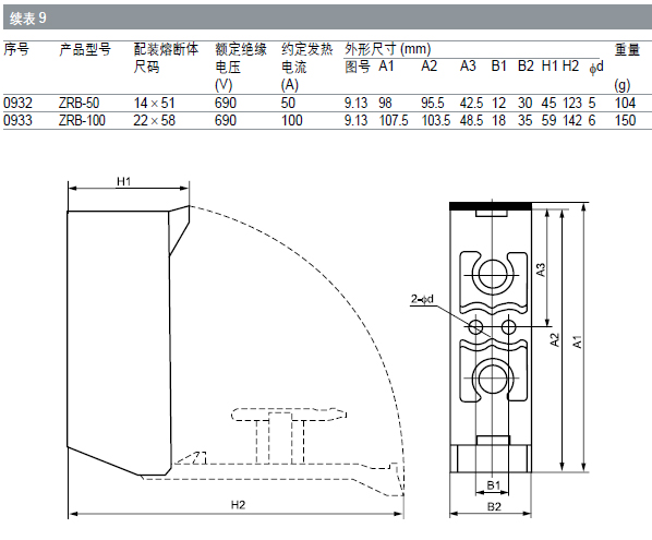其中RT18N、RT18B 在同一外形尺寸的底座上,可供用戶選擇配置五種不同尺碼的熔斷體;RT18N 有兩路進(jìn)出線,一路配置相