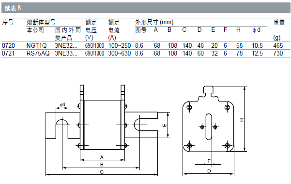 本系列熔斷體額定分?jǐn)嗄芰χ?00kA。
