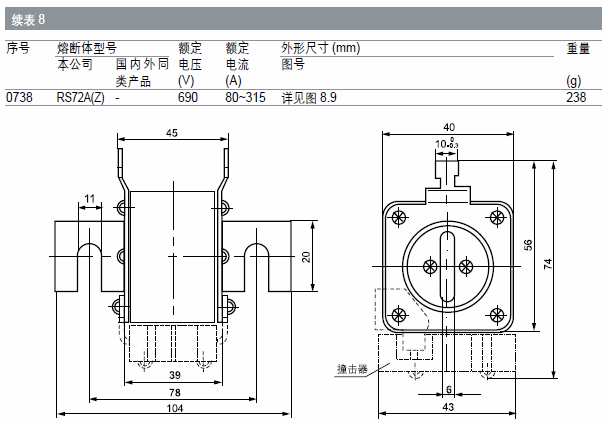 體二端采用點焊與觸頭牢固電連接。熔斷體型式有方管刀形觸頭和方管平板形觸頭兩種。熔斷體可帶指示器或撞擊器,當(dāng)熔體熔