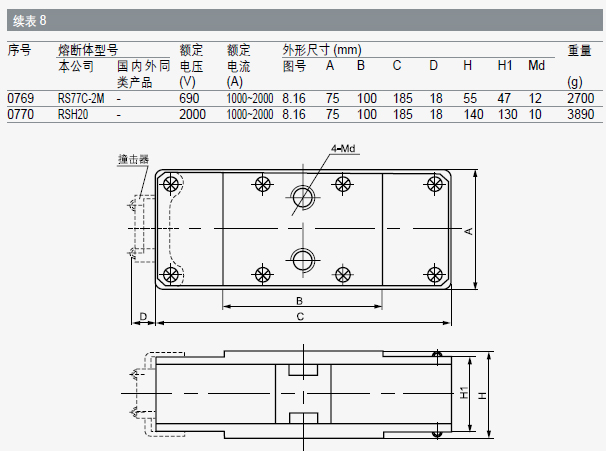 本系列熔斷體額定分?jǐn)嗄芰χ?00kA。