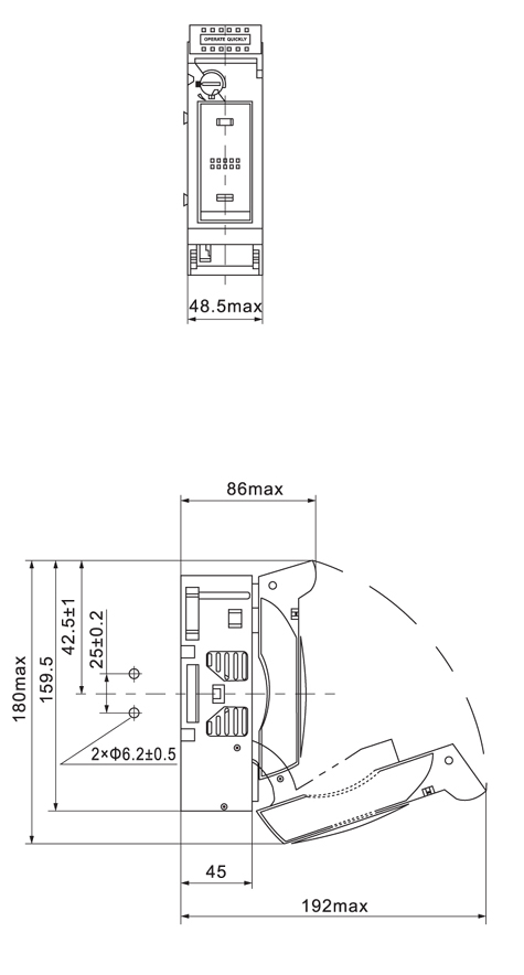 a、開關(guān)有底座和罩殼(載熔裝置)兩部分組成,呈封閉結(jié)構(gòu),正面操作,通過罩殼上的透明板,可以直接觀察配裝的熔斷體額定數(shù)據(jù)及指示件的動(dòng)作狀態(tài),開關(guān)配裝相應(yīng)尺碼的熔斷體;