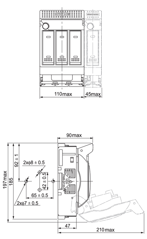 a、開關有底座和罩殼(載熔裝置)兩部分組成,呈封閉結構,正面操作,通過罩殼上的透明板,可以直接觀察配裝的熔斷體額定數(shù)據(jù)及指示件的動作狀態(tài),開關配裝相應尺碼的熔斷體;